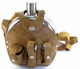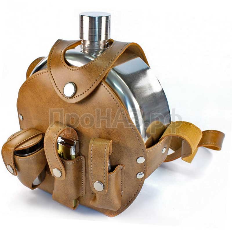 Фляга из нержавейки Россия в кобуре Объем - 42 oz Комплектуется тремя стопками, мультитулом и зажигалкой Фиксируется чехлом на ремне, для удобного хранения и использования.