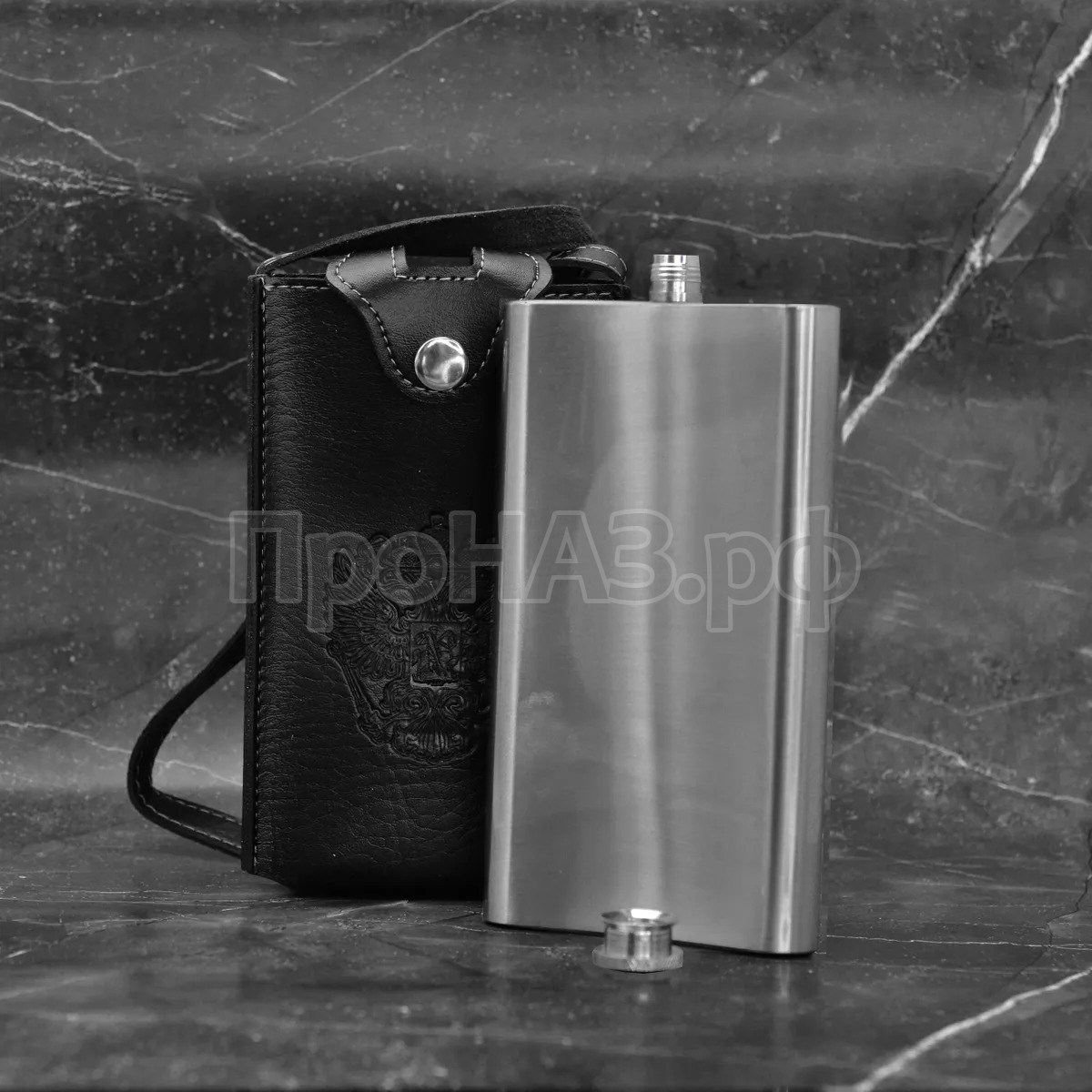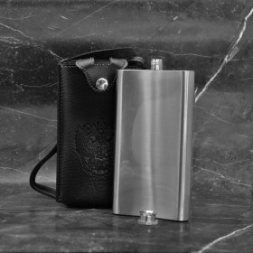 Фляжка в кобуре стальная плоская зеркальная 10 oz (300 мл.) серебристый
