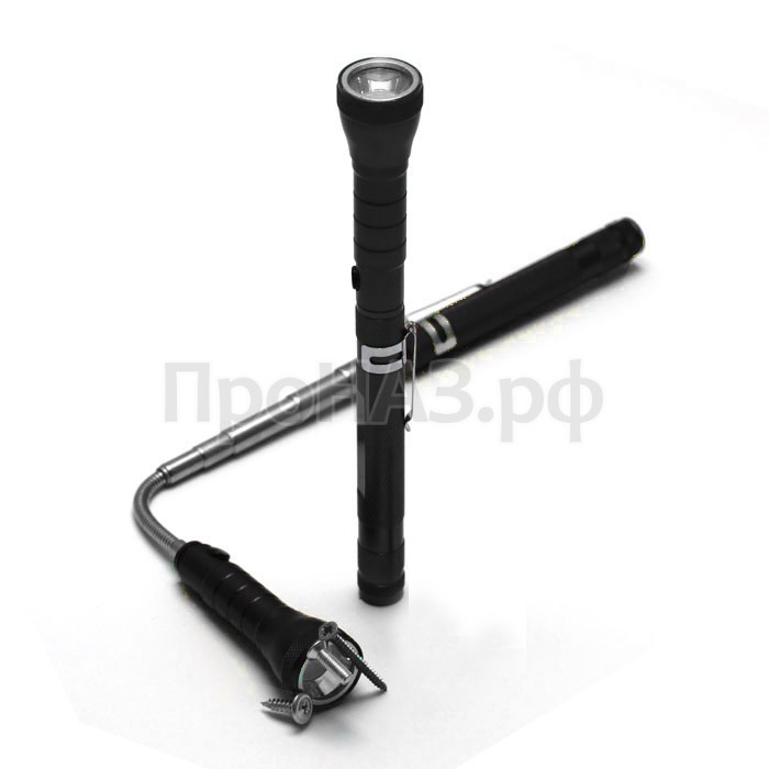 Телескопический выдвижной фонарик с магнитом – идеальное средство для освещения труднодоступных мест. Фонарик выполнен с телескопической выдвижной гибкой конструкцией, длинной и удобной алюминиевой ручкой, которая может выдвигаться на 60 см. – удобное и эффективное средство для освещения мест, куда не может протянуться рука человека со стандартным фонарем.