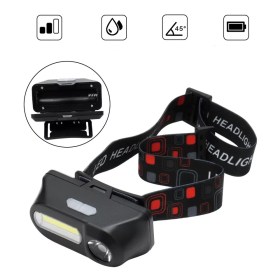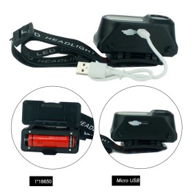 Данная модель совмещает в одном корпусе два независимых друг от друга фонарика. У каждого своя кнопка управления и включение - выключение. В левой части корпуса расположен фонарик СОВ с 12 диодами. Он имеет очень яркий рассеянный свет и используется при ближнем освещении (ближний свет). В правой части корпуса расположен фонарик со светодиодом ХРЕ который имеет сфокусированный луч, применяется при дальнем освещении. Каждый из фонариков имеет 3 режима работы (интенсивный, экономный режим и стробоскоп). Источником питания служит съёмный аккумулятор типа 18650 (3,7V, Li-ion). Зарядка осуществляется с помощью USB шнура (комплектуется) от любого USB адаптера или разъёма. Также фонарь может выдержать мелкий дождь недолгое время (пока Вы остановитесь и снимите его с головы) и устойчив к низкой температуре (-5С).