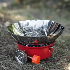 Стальные регулируемые отражатели не только защитят пламя от ветра и осадков, но и направят всё тепло вверх, что ускорит кипячение в любую погоду и заметно сбережет газ!