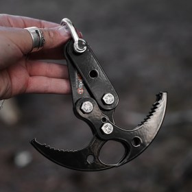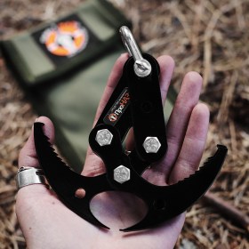 При ударе о препятствие, крюк хищно раскрывает свои острые зубья, и когда крюк поднимается, зубья схлопываются наподобие клыков бульдога.