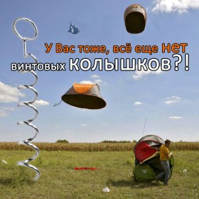 - 1 Колышек: Если Вы расположились на открытом пространстве, то необходимо использовать минимум 1 винтовой колышек. Даже сильный ураганный ветер, не сможет вырвать винтовой колышек. И Вашу палатку не унесет в Волшебную страну, хотя и возможно повреждение палатки, которая будет болтаться на одном креплении.