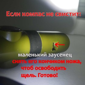 В конструкции компас-свистка предусмотрены шесть полезных элементов – включая термометр, свисток, компас, сигнальное зеркало, лупу, фонарь LED и сигнальное зеркало. С помощью корпуса становится гораздо проще комфортно ориентироваться на воде и суши. Компас-свисток выполнен со специальным шнурком, с удобством переноски и хранения.