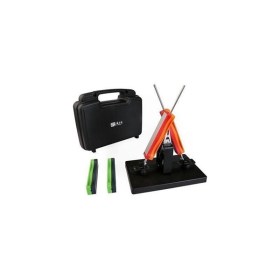 Система для заточки кликов. Легкая, малоразмерная, хранится в пластиковом чемоданчике с ложементами под каждый предмет. Система быстро собирается и разбирается. Станок позволяет строго выдерживать нужный угол заточки, в наборе имеются камни с зернистостью 360,600,800,1000 грит. Благодаря компактности набор может применяться практически в любой обстановке. Комплектация станок; пластиковый футляр