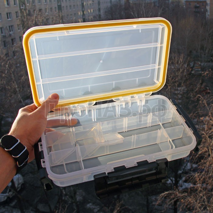 1Большой Контейнер-органайзер EDC. Прочный корпус имеет 100% водонепроницаемость. 3 мощные рычаговые защелки и регулируемые отсеки. Содержимое отсеков не перемешается при транспортировке. Прозрачный корпус.