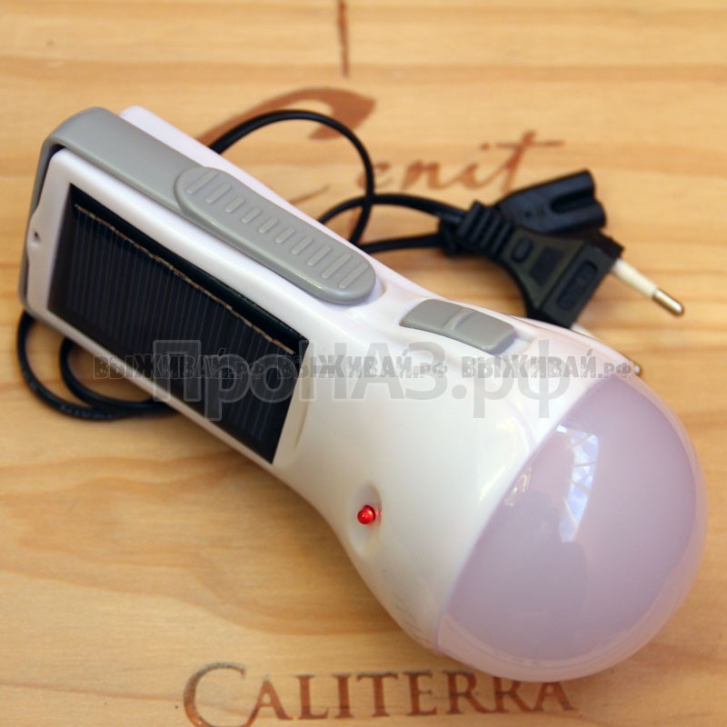 Яркая лампа, в прочном корпусе, с аккумулятором + порт USB для зарядки устройств, 2 режима работы. 3 красных диода в режиме сигнала, 9 диодов последнего поколения (2015) на лампе. Кабель 220В для зарядки и солнечная панель.