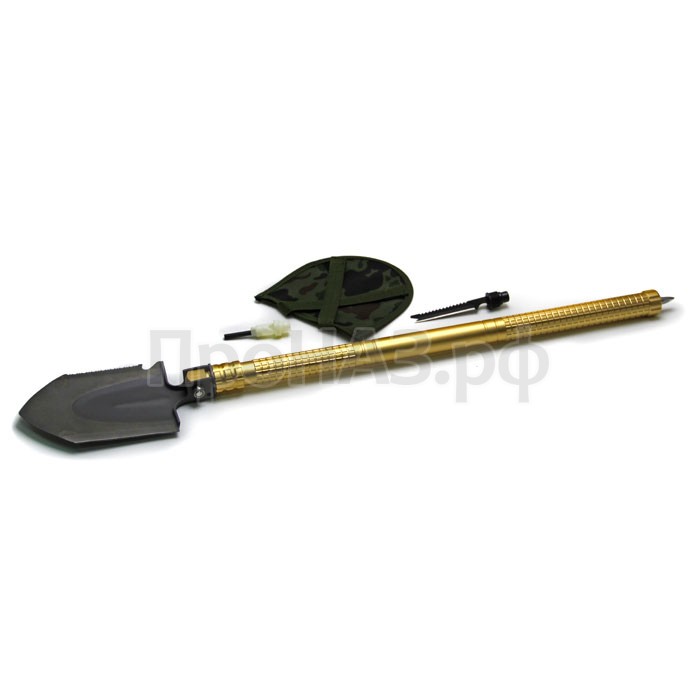 Этот многофункциональный предмет поможет в любом походе! Размер всего аксессуара составляет 75 сантиметров, длина лопаты – 16 сантиметров.