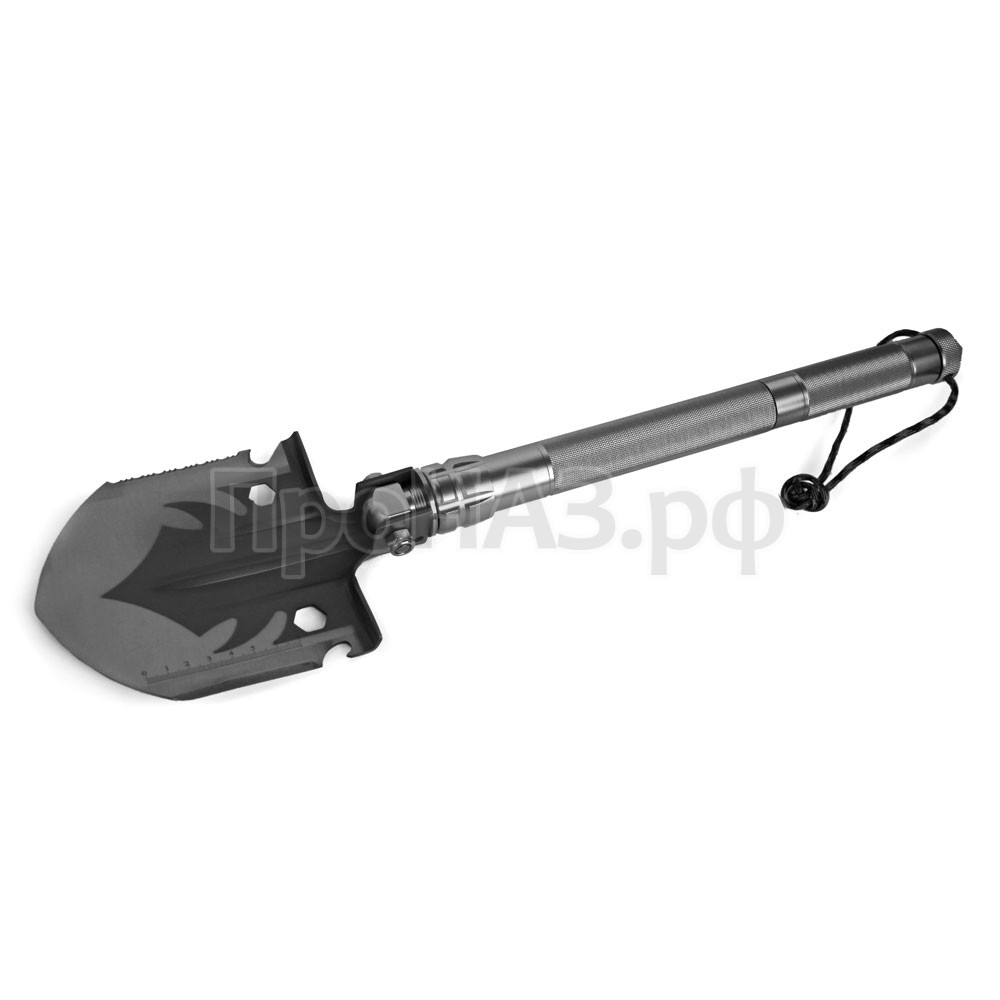 Лопата многофункциональная (топор, пила, кирка, нож), благодаря небольшим размерам не займет много места в багажнике автомобиля, кофре квадроцикла, рюкзаке. В лопате есть место для организации набора выживания в герметичной полости внутри рукояти. Нержавеющая, толстая, прочная сталь.