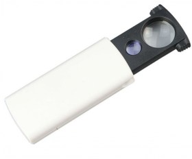 Данная модель обладает складным механизмом, что исключает ее повреждения и продлевает служебный срок. Выдвижная часть состоит из двух увеличительных стекол разного диаметра (2 и 0,9 см). Увеличение картинки происходит в 20-х и 45-тикратном размере, благодаря чему превосходно просматриваются мельчайшие элементы. Лупа 92045 снабжена одной светодиодной лампочкой, за счет чего детали окажутся более доступными при рассмотрении.
