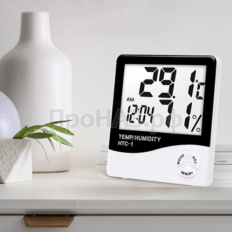 Метеостанция HTC-1 представляет собой компактный электронный прибор с термодатчиком и гигрометром. Дополнительные функции: часы, календарь и будильник. Температурные показатели на экране прибора могут отображаться в двух системах единиц: градусах Цельсия и по Фаренгейту. Устанавливается на подставке или крепится на стену. Крупный легкочитаемый LCD дисплей.