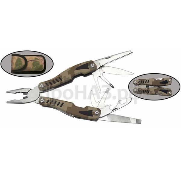 Мультитул занимает в кармане рюкзака или бардачке автомобиля совсем не много места, но может заменить собой десятки инструментов. Мультитул Камуфляж TM003 - многофункциональная модель для проведения мелкого ремонта.