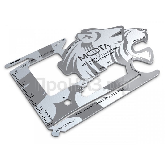 MOTA 18-in-1 Lion Head Tool, в отличии от других мультитулов выполнен в виде плоской миниатюрной карточки — отвечает требованиям TSA. Он не имеет острых углов, открытых режущих или колющих выступов, опасных при использовании и транспортировке. Хранить такой, размером с кредитную карту, инструмент можно в кармане, портмоне, блокноте или записной книжке.