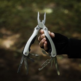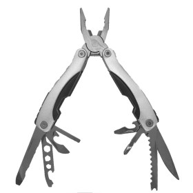 Все рабочие элементы мультитула изготовлены из высококачественной стали. Покрытие рукояток препятствует скольжению и не позволит инструменту выскользнуть из рук во время работы. При этом ручки легко сложить и поместить мультитул даже в небольшой карман. Так же его можно удобно разместить на поясе, благодаря прочному чехлу, предлагающемуся к мультитулу. Складной мультитул незаменим в ситуациях, когда нужно выполнить большое количество задач, но нет возможности носить с собой целый ящик с инструментами. Это универсальный помощник в мелком ремонте дома и на даче. В туристическом походе и в поездке. На рыбалке и на охоте. А ещё, он станет замечательным подарком для любого мужчины.