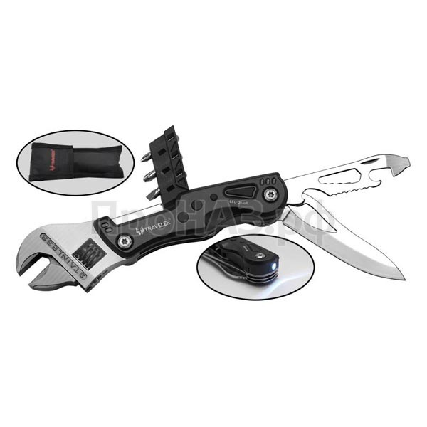 Производитель- Traveler Страна- КНР Oбщая длина- 230 мм Длина клинка- 78 мм Толщина клинка- 2 Сталь- 420, Рукоять- металл, пластик Чехол- нейлон