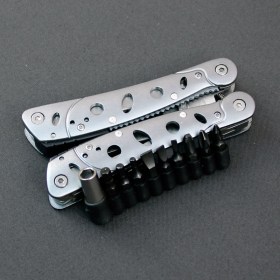 В комплекте нейлоновый чехол, в который помещается мультитул и сменные биты.