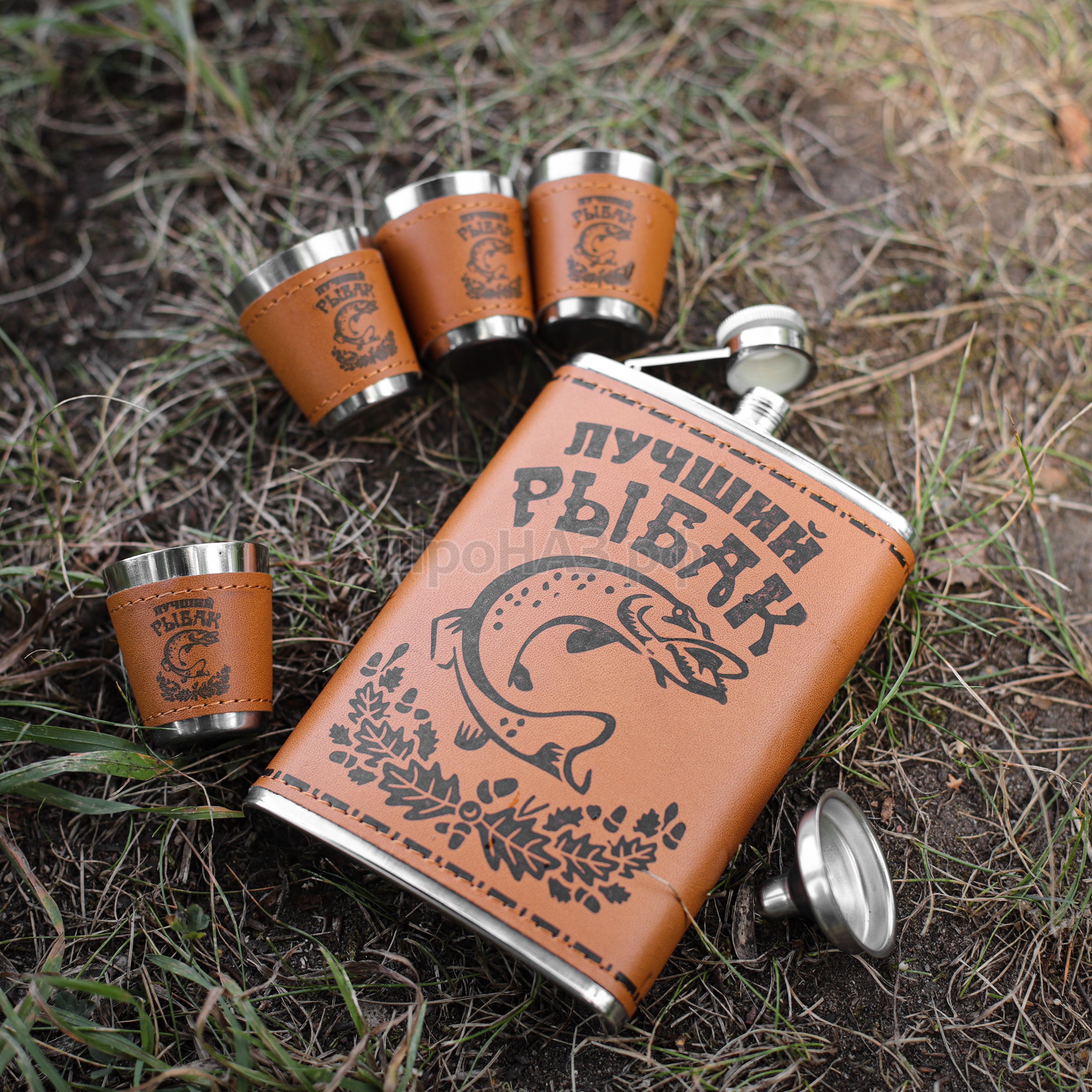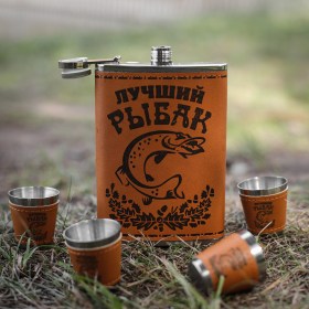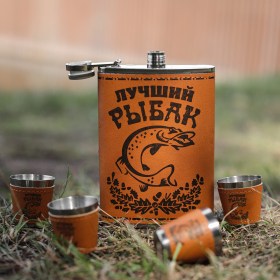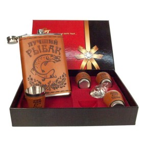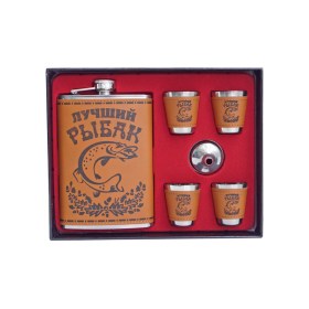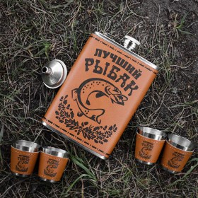 Набор подарочный "Лучший рыбак", фляга + 4 стопки в подарочной упаковке.