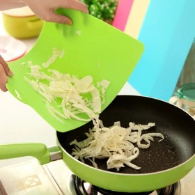 Гибкие разделочные доски прекрасно подходят для ножей из любого материала. После нарезания продукта вы можете просто согнуть доску и пересыпать все содержимое в нужную емкость. Вам не придется дополнительно пачкать тарелки.