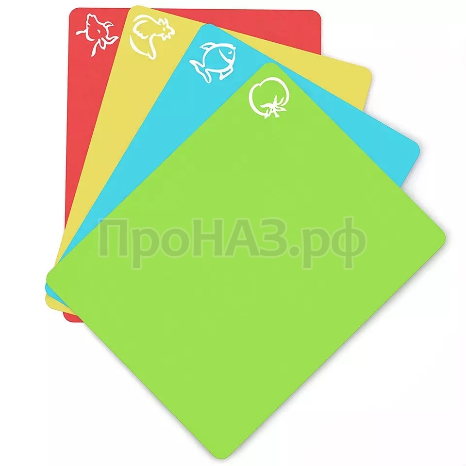 Для удобства использования доски имеют различные цвета и символы, соответствующие разным видам продуктов. Одим из преимуществ использования гибких досок является то, что они, в отличие от стеклянных кухонных досок, продлевают жизнь дорогим ножам. Твердое лезвие стального или керамического ножа в процессе нарезки не «сталкивается» c твердой (стеклянной) поверхностью, а мягко проваливается в пористую и безопасную структуру пластичной доски.