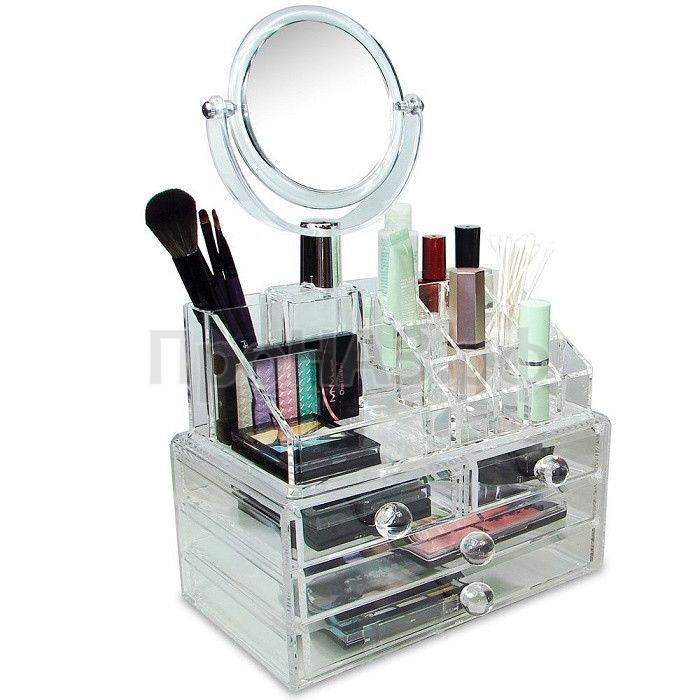 Невероятно вместительный и удобный акриловый органайзер для хранения косметики Cosmetic Organizer. Благодаря прозрачным стенкам, поиск необходимой вещи проходит быстро. Вмещает в себя все необходимые дамские вещи. Данная модель оснащена зеркалом, а это значит что для того чтобы нанести макияж Вам нужет только органайзер для хранения косметики с зеркалом Cosmetic Organizer.