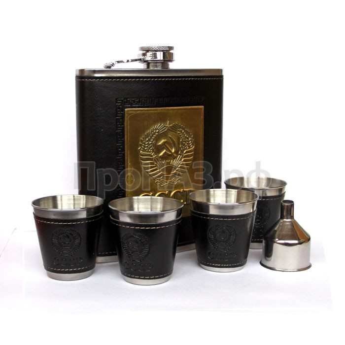 Красивый подарочный набор: Фляжка (540мл), 4 стаканчика, воронка