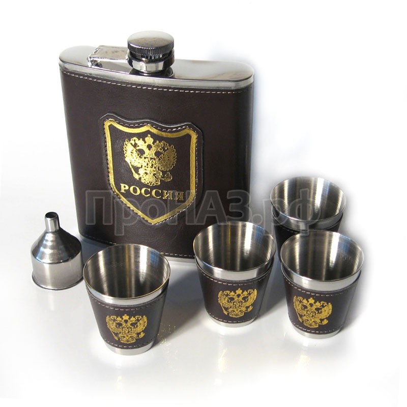 Подарочный набор "Россия": фляжка 9oz 0,25 литра, 4 стопки, воронка
