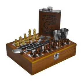 Вы подарите удобный комплект для походов или посиделок с компаньоном.Набор с металлической флягой обрадует любителя охоты, походов, рыбака или путешественника.