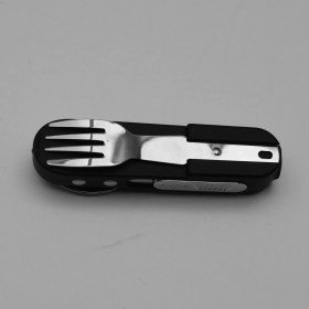 Незаменимый походный набор включающий в себя: вилка ложка беспламенная спиральная USB зажигалка лазер боковой фонарик Набор выполнен из высококачественной нержавеющей стали, упакованный в специальный чехол