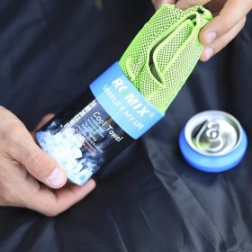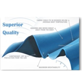 Охлаждающее полотенце поможет сохранить прохладу и свежесть во время занятий спортом, а так же позаботится о любителях активного и пляжного отдыха делая пребывание на солнце более комфортным. Охлаждение ткани в течении длительного времени обеспечивается за счет уникальной структуры переплетения волокон, в которых создается баланс влажности и испарения. Длительное использование и многократные стирки не влияют на охлаждающие свойства ткани. Эта ткань не имеет химической пропитки и не содержит охлаждающих гелей. Чтобы активировать охлаждающее действие изделия его нужно намочить - отжать - встряхнуть. Подходит вода из любого источника: из-под крана, дождевая, речная, морская, влага от потоотделения - они реактивируют охлаждающую функцию снова и снова. Охлаждающие полотенца отличаются высоким качеством используемых в производстве материалов. Материалы эти гипоаллергенны, поэтому даже на самой нежной коже не вызовут раздражения.