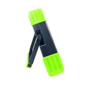 Фонарь влагостойкий, имеет прорезиненную кнопку включения. На задней части корпуса расположена складная ручка-подставка с 7 фиксированными положениями.
