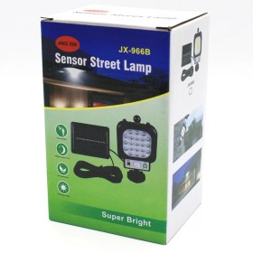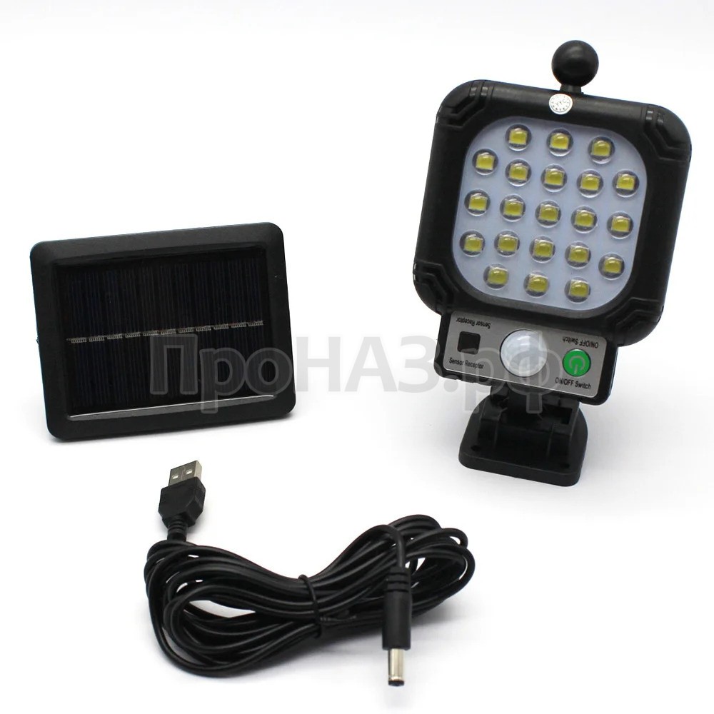 Светильник уличный JX-966A в форме прожектора способен работать автономно за счет солнечной батареи, оснащен датчиком движения, всепогодный, не боится влаги. Отлично подходит для освещения загородного дома.