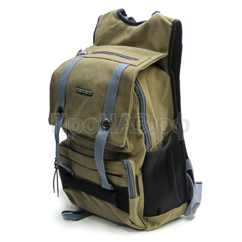 Брезент (он же canvas или канвас, tarpaulin или tarpauling) - это плотная парусина, пропитанная различными защитными составами. Изготавливается брезент из натуральных материалов (льна, ждута, хлопка), иногда с добавлениями синтетического волокна. Рюкзаки из брезента - очень прочные, почти неубиваемые, со временем приобретают благородную изношенность.