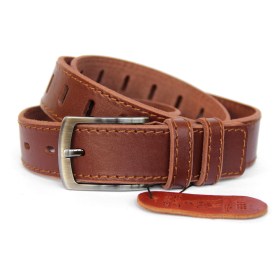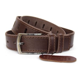 Ремень кожаный однослойный. Прекрасно держит форму и не теряет внешний вид. Сделан из плотной кожи аргентинского буйвола. Частично прошит черной вощеной нитью. Пряжка никелевая глянцевая.