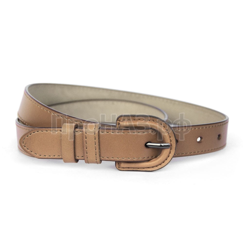 Женский ремень из натуральной кожи. Прекрасно держит форму и не теряет внешний вид. Частично прошит черной вощеной нитью. Пряжка никелевая глянцевая.