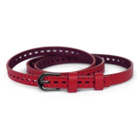 Женский ремень из натуральной кожи. Прекрасно держит форму и не теряет внешний вид. Частично прошит черной вощеной нитью. Пряжка никелевая глянцевая.