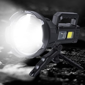 Фонарь имеет небольшой вес и удобную ручку, а для установки на поверхность, используется тренога, благодаря которой, фонарь оснащен поворотной конструкцией, что позволяет ему светить под определенным углом.