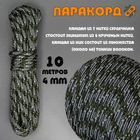 Паракорд российского производства. Полностью соответствует максимальным стандартам прочности и износоустойчивости. Имеет минимальное растяжение под нагрузкой. Шнур для военных, туристов и экстремалов.
