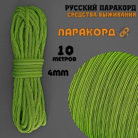 Русский паракорд 4мм (Paracord III-550) Неон, черно-зеленая полоска (10м)