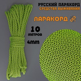 Паракорд российского производства. Полностью соответствует максимальным стандартам прочности и износоустойчивости. Имеет минимальное растяжение под нагрузкой. Шнур для военных, туристов и экстремалов.