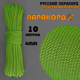 Русский паракорд 4мм (Paracord III-550) Неон, черно-зелёный зигзаг (10м)