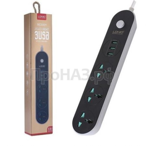 Сетевой фильтр LDNIO Power Socket 3x220w + 3xUSB 3,1A 1,6m SC3301 Спецификация: Размер: 282.4 х 58.4 х 32.8 (В) мм Длина кабеля: 1.6 м Количество гнезд: 3 Характеристики разъем: тип европа количество USB интерфейсов: 3 Номинальная мощность: макс 2500w макс 250v * 10a Номинальное напряжение: AC 100V ~ 250V Совместимость: Iphone, Ipad, смартфоны, планшеты