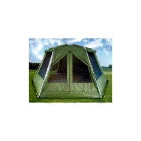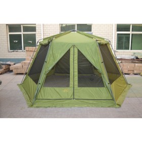 Все швы проклеены Тент обладает высокой водонепроницаемостью 3000 мм водяного столба Ветрозащитная юбка Материал тента: Poly Taffeta 210T PU, Оxford 150D Размеры шатра (ДхШхВ): 420*385*236