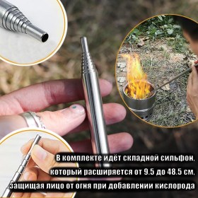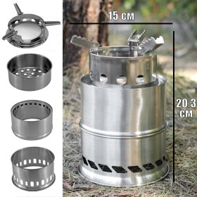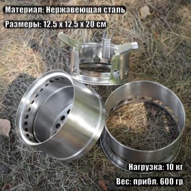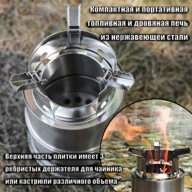 Компактная и портативная топливная и дровяная печь из нержавеющей стали - это незаменимое дополнение к вашему походному снаряжению. С её помощью можно легко готовить еду, кипятить воду или просто греться.