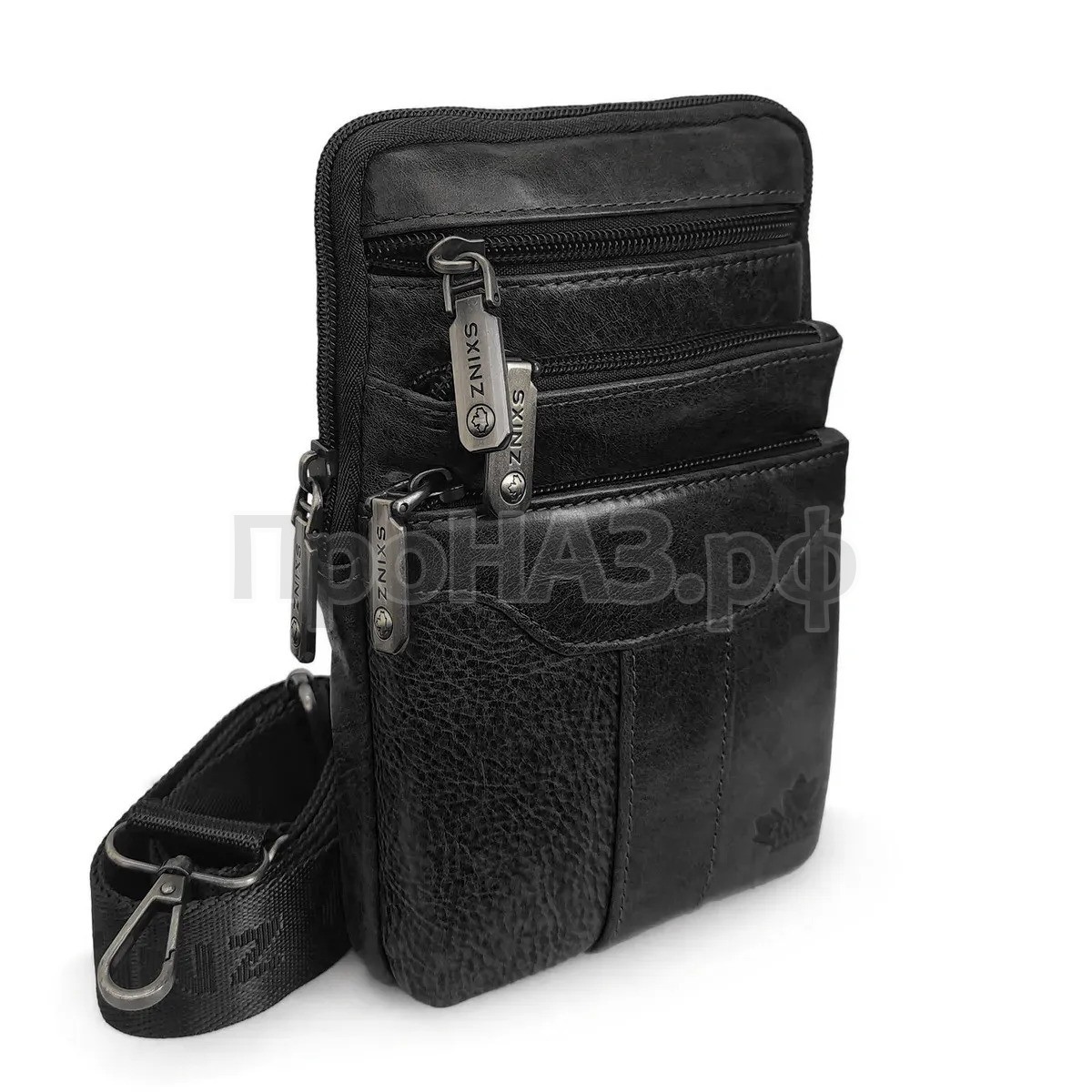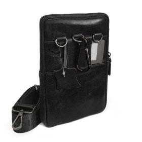 Сумка органайзер на пояс и через плечо, для кошелька, документов и телефона. Натуральная кожа, карабин, ремень Znixs 25011 черный