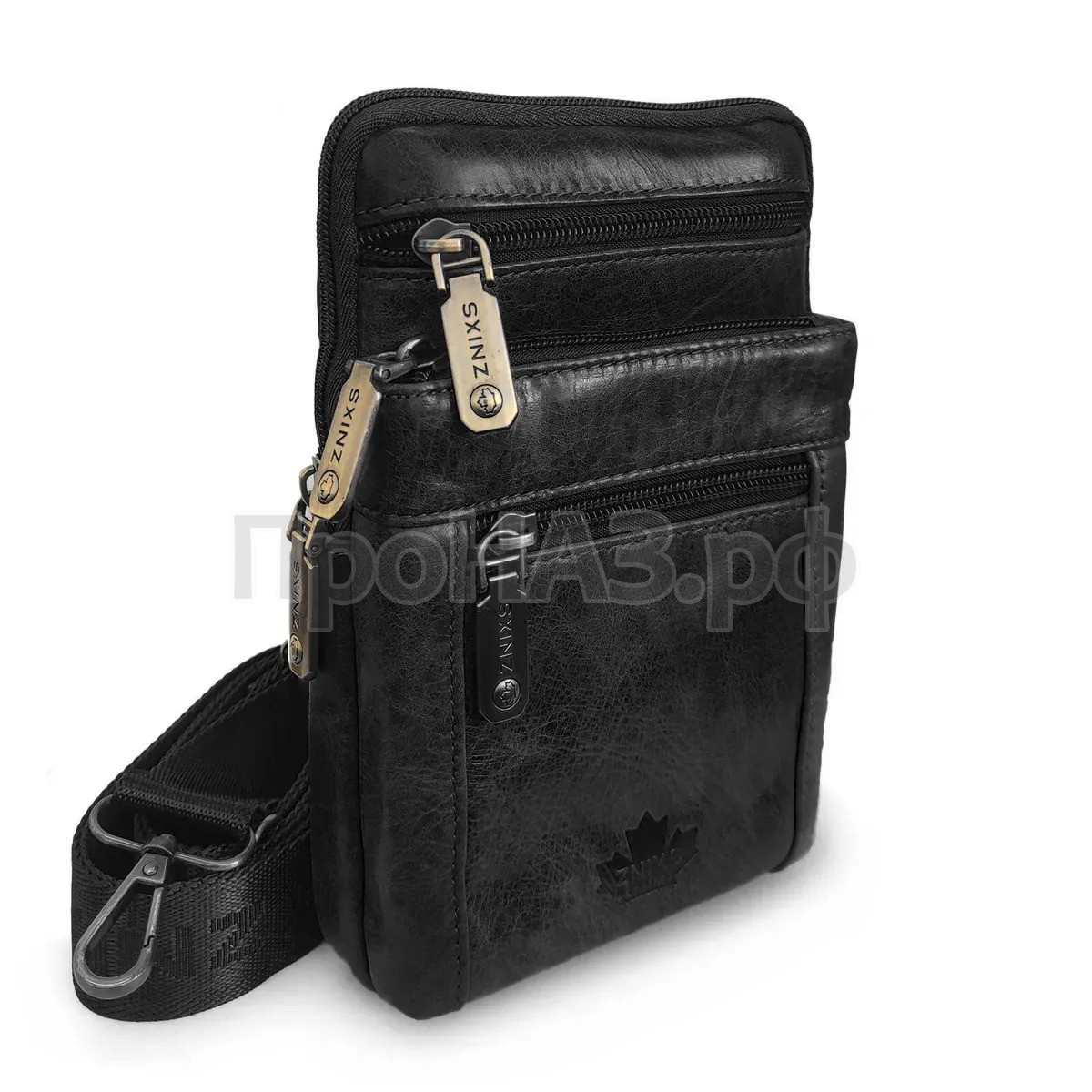 Сумка органайзер на пояс и через плечо, для кошелька, документов и телефона. Натуральная кожа, карабин, ремень Znixs 25012 черный