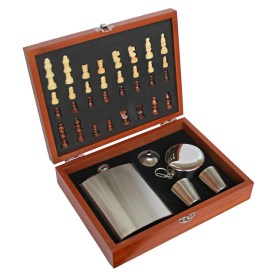 Красивый мужской подарочный набор: Шахматы, (можно играть в шашки) и фляжный набор.