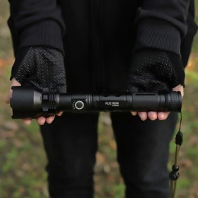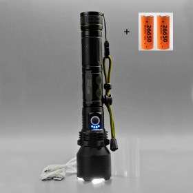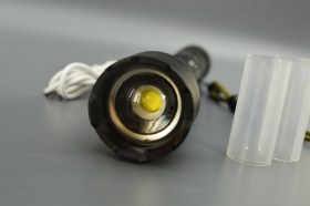 Дальнобойный фонарь работает от 2-литий-ионных аккумуляторов (2*18650 или 2*26650), ёмкостью 5000mAh, благодаря чему продолжительность непрерывного свечения на максимальном режиме составляет 4–5 часов.