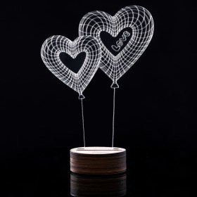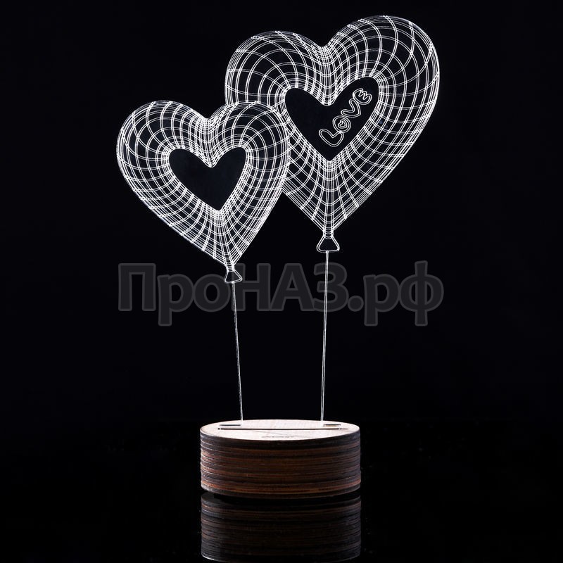 Светильник-ночник 3D «Сердца» - модный сувенир и полезное приобретение для дома и офиса. За счет специальной конструкции светильника, оригинальная схема линий-световодов создает эффект 3D модели. Рисунок состоит из тонких линий, реализующих объемную фигуру. Рисунок надежно нанесен на прозрачную пластину (акриловая доска), которая вставляется в прорезь несущего основания со светодиодами. Тонкие линии в темноте создают иллюзию объема - 3D. Светильник послужит отличным и запоминающимся подарком сотрудникам, бизнес-партнерам, а также возможность создать уникальный продукт по вашему дизайну!