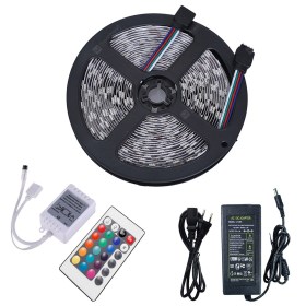 В комплект поставки входят: пульт дистанционного управления, кабель питания, сама светодиодная лента 5 метров.
