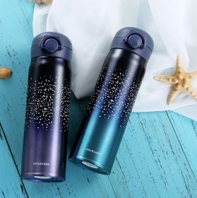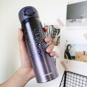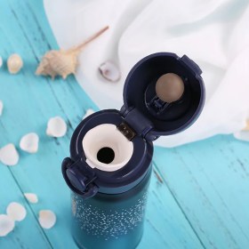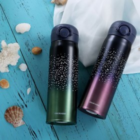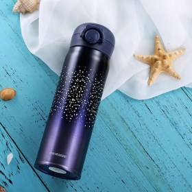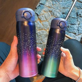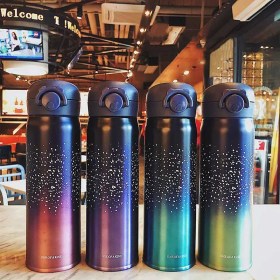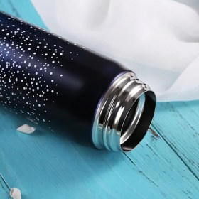 Минималистские рисунки на градиентном фоне - это стильно. А стальная колба - это надежно. Крышка термоса оборудована надежной силиконовой заглушкой, что дает защиту от протекания и потери тепла напитка.